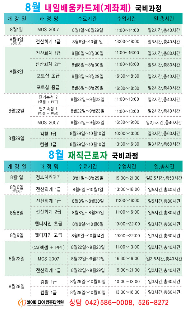 [정규과정]8월 일정안내입니다.(대전캠퍼스)