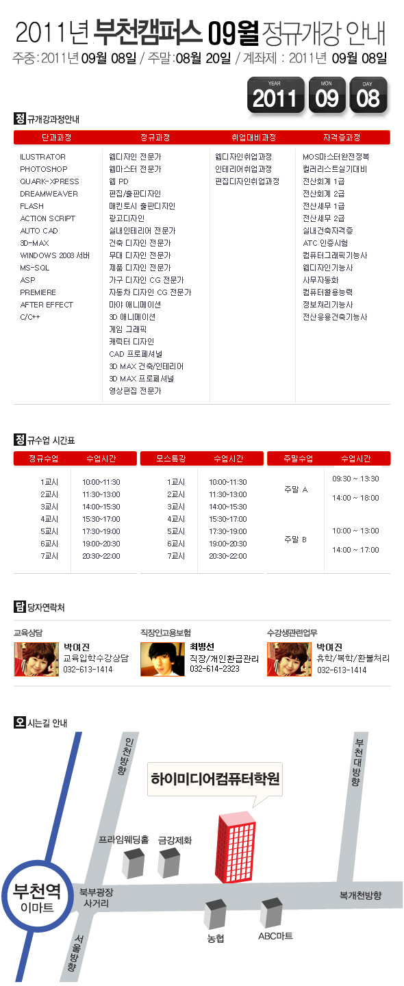 [정규개강] 2011년 09월 부천캠퍼스 개강안내