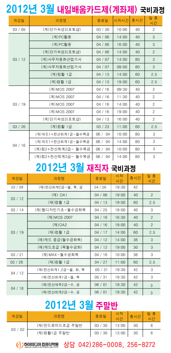[정규개강]2012년 3월 개강일정입니다.(대전캠퍼스)