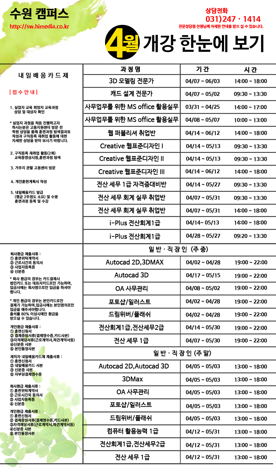 4월 개강 한눈에 보기