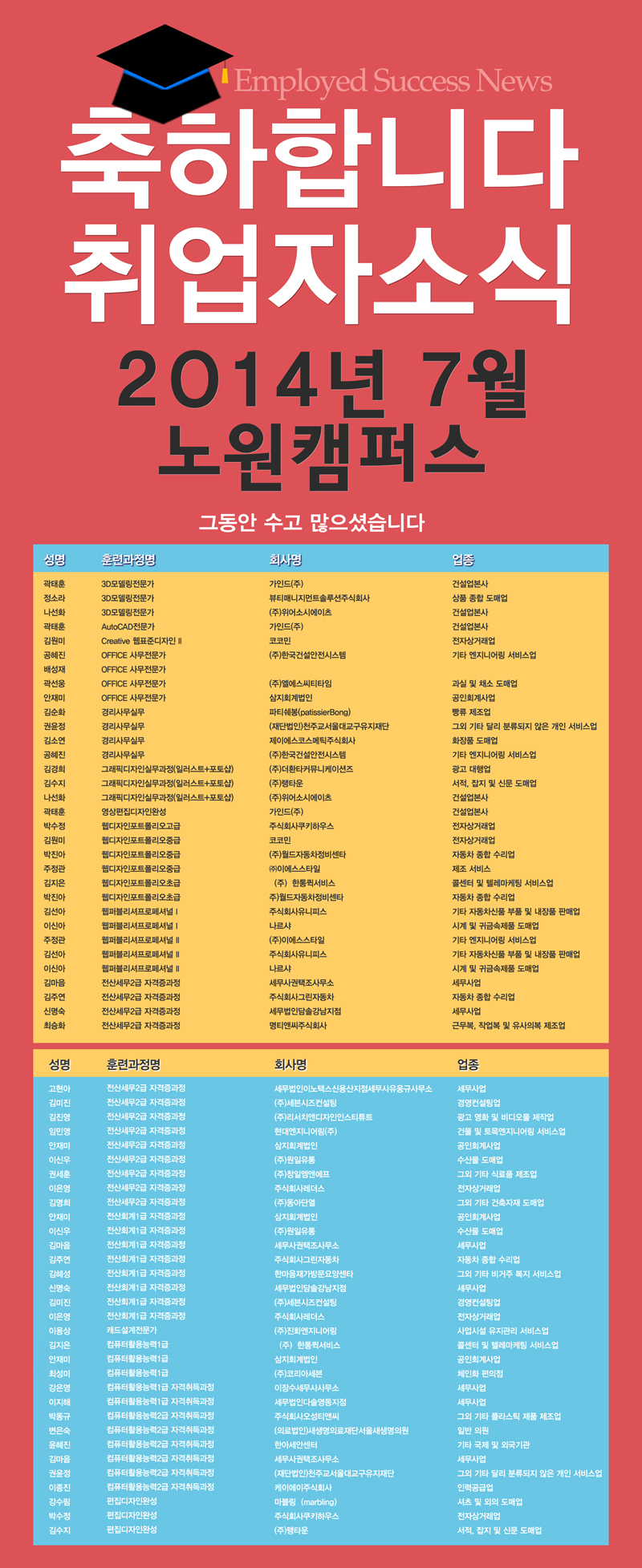 [성공취업] 2014년 7월 성공취업자 소식